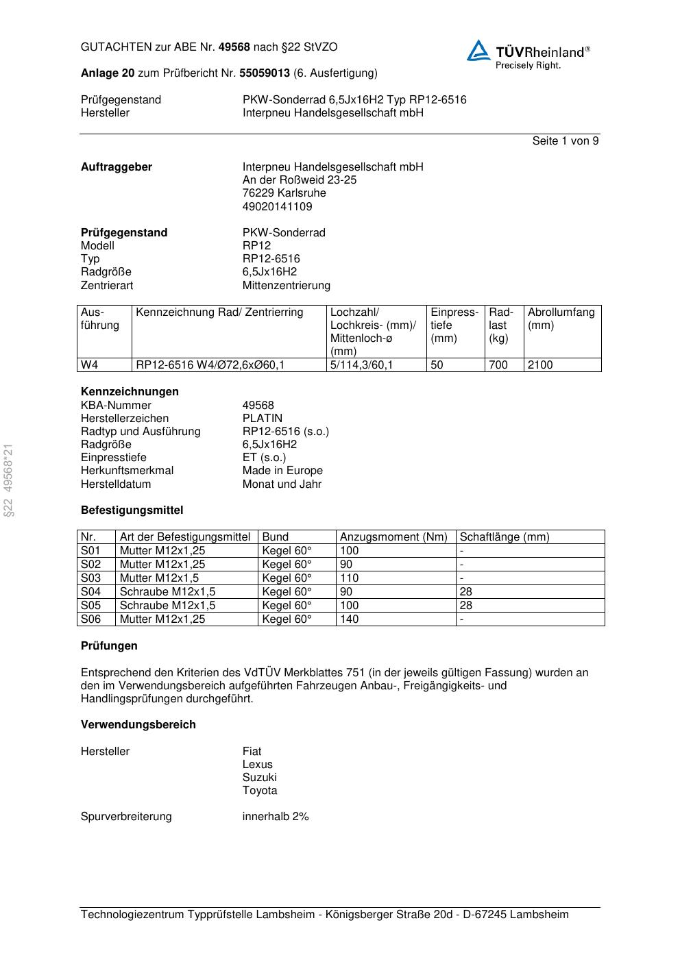 - Stimmt die KBA-Nummer auf der Felge mit diesem Dokument überein?