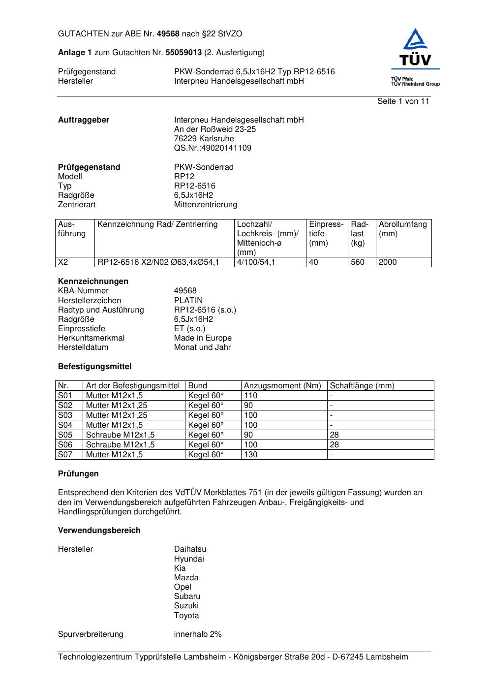 • Stimmt die KBA-Nummer auf der Felge mit diesem Dokument überein?