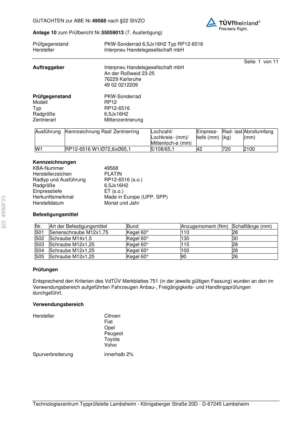 • Stimmt die KBA-Nummer auf der Felge mit diesem Dokument überein?