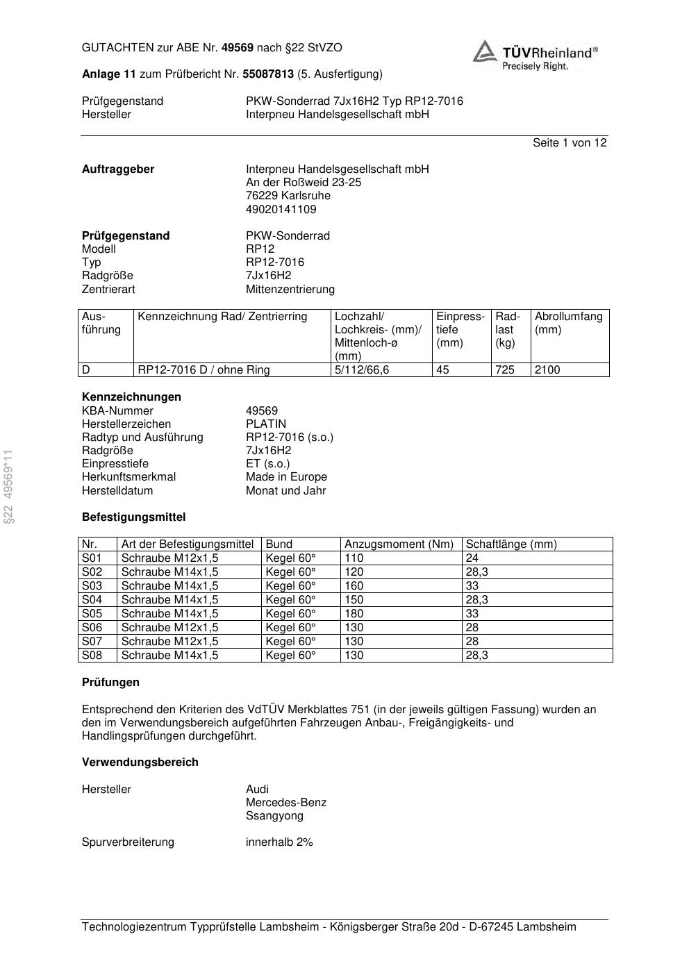 • Stimmt die KBA-Nummer auf der Felge mit diesem Dokument überein?