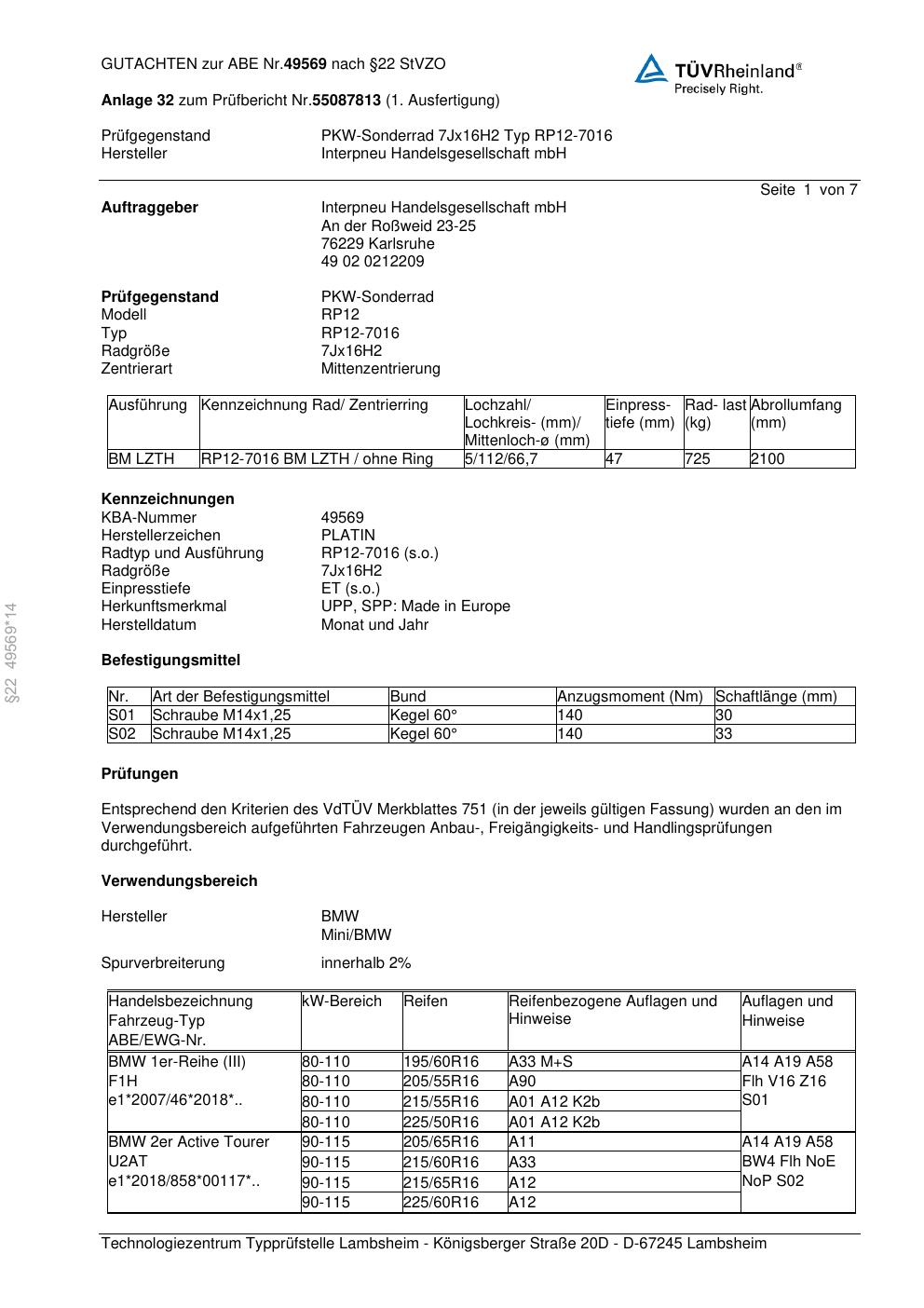 • Stimmt die KBA-Nummer auf der Felge mit diesem Dokument überein?