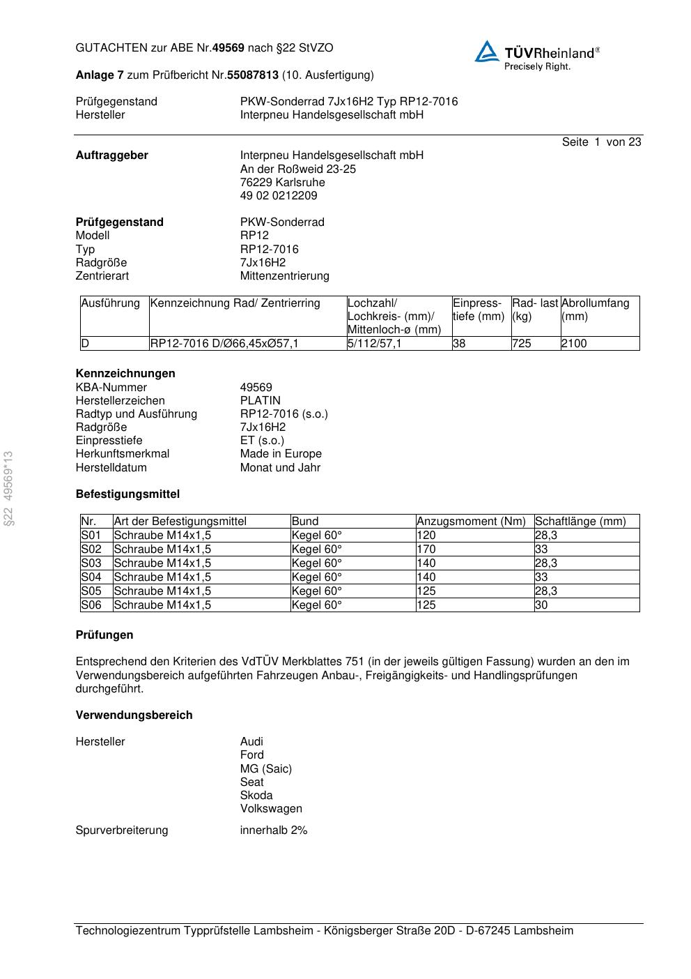 Dieses abe gehört zur Felge Platin RP12-7016 in 7Jx16 ET0 mit KBA 49569. Die Seite ist dafür gedacht, dass du schnell prüfen kannst, ob KBA, Design und Größe zu deiner Felge passen und danach direkt das richtige PDF lädst.