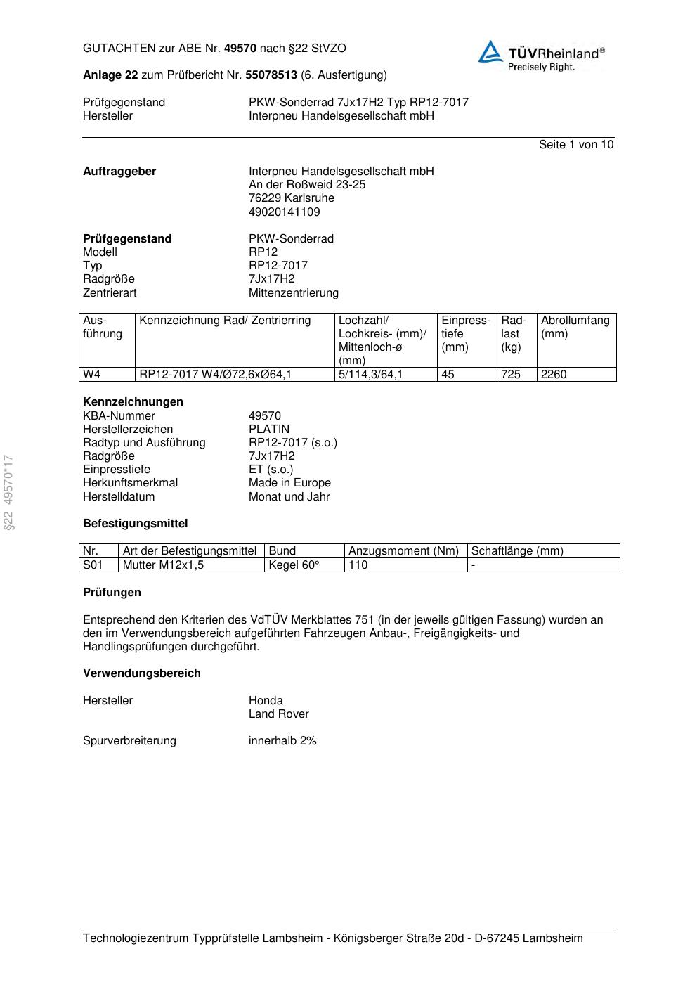 Dieses abe gehört zur Felge Platin RP12-7017 in 7Jx17 ET0 mit KBA 49570. Die Seite ist dafür gedacht, dass du schnell prüfen kannst, ob KBA, Design und Größe zu deiner Felge passen und danach direkt das richtige PDF lädst.