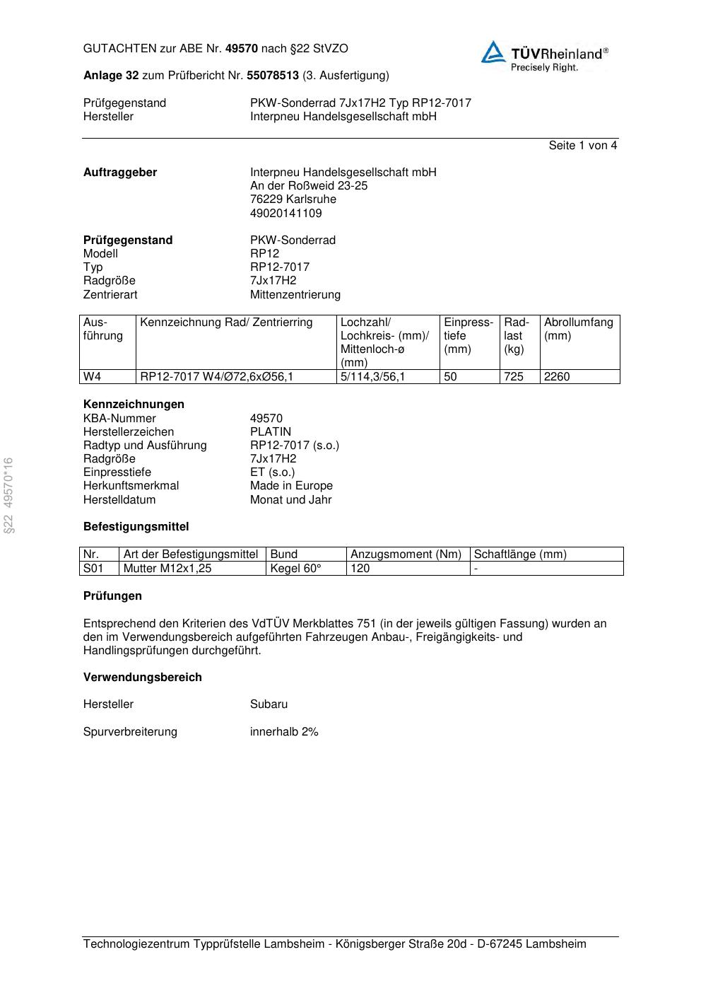 7.0Jx17 ET0.0 · KBA 49570