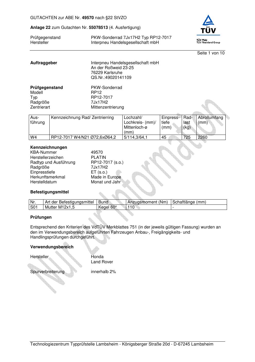 Dieses abe gehört zur Felge Platin RP12-7017 in 7Jx17 ET0 mit KBA 49570. Die Seite ist dafür gedacht, dass du schnell prüfen kannst, ob KBA, Design und Größe zu deiner Felge passen und danach direkt das richtige PDF lädst.