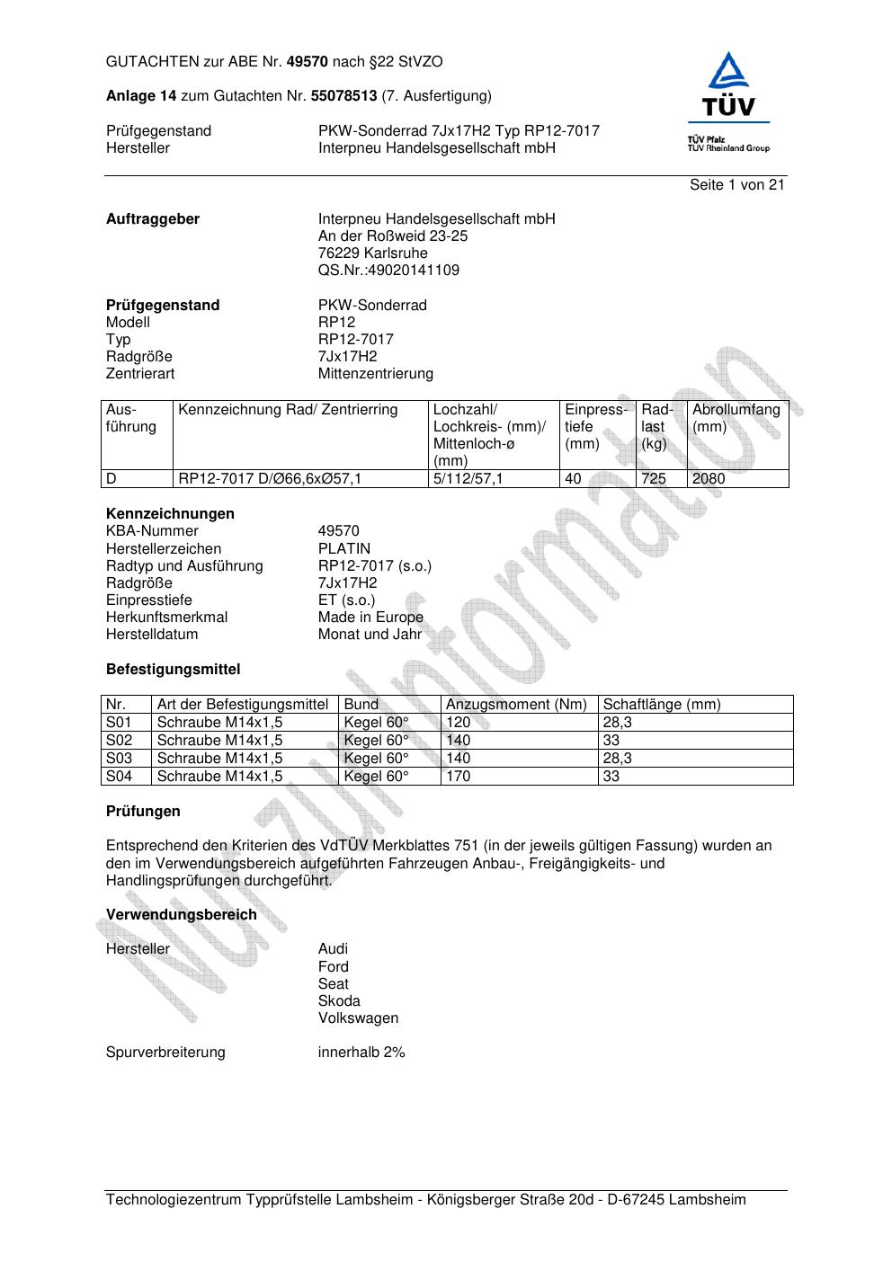Dieses abe gehört zur Felge Platin RP12-7017 in 7Jx17 ET0 mit KBA 49570. Die Seite ist dafür gedacht, dass du schnell prüfen kannst, ob KBA, Design und Größe zu deiner Felge passen und danach direkt das richtige PDF lädst.