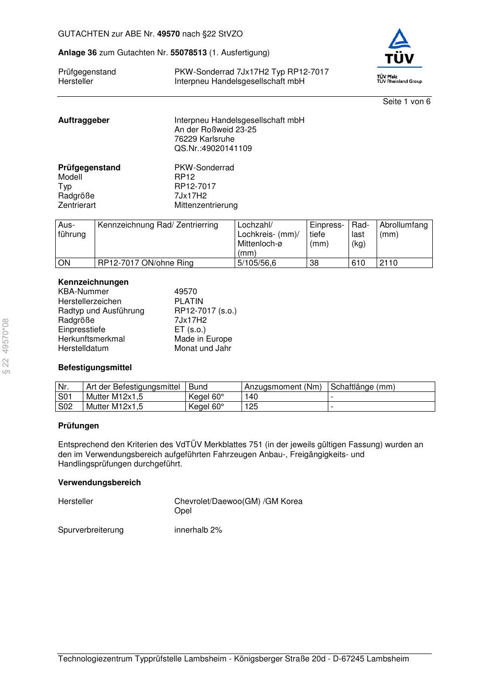 Dieses abe gehört zur Felge Platin RP12-7017 in 7Jx17 ET0 mit KBA 49570. Die Seite ist dafür gedacht, dass du schnell prüfen kannst, ob KBA, Design und Größe zu deiner Felge passen und danach direkt das richtige PDF lädst.