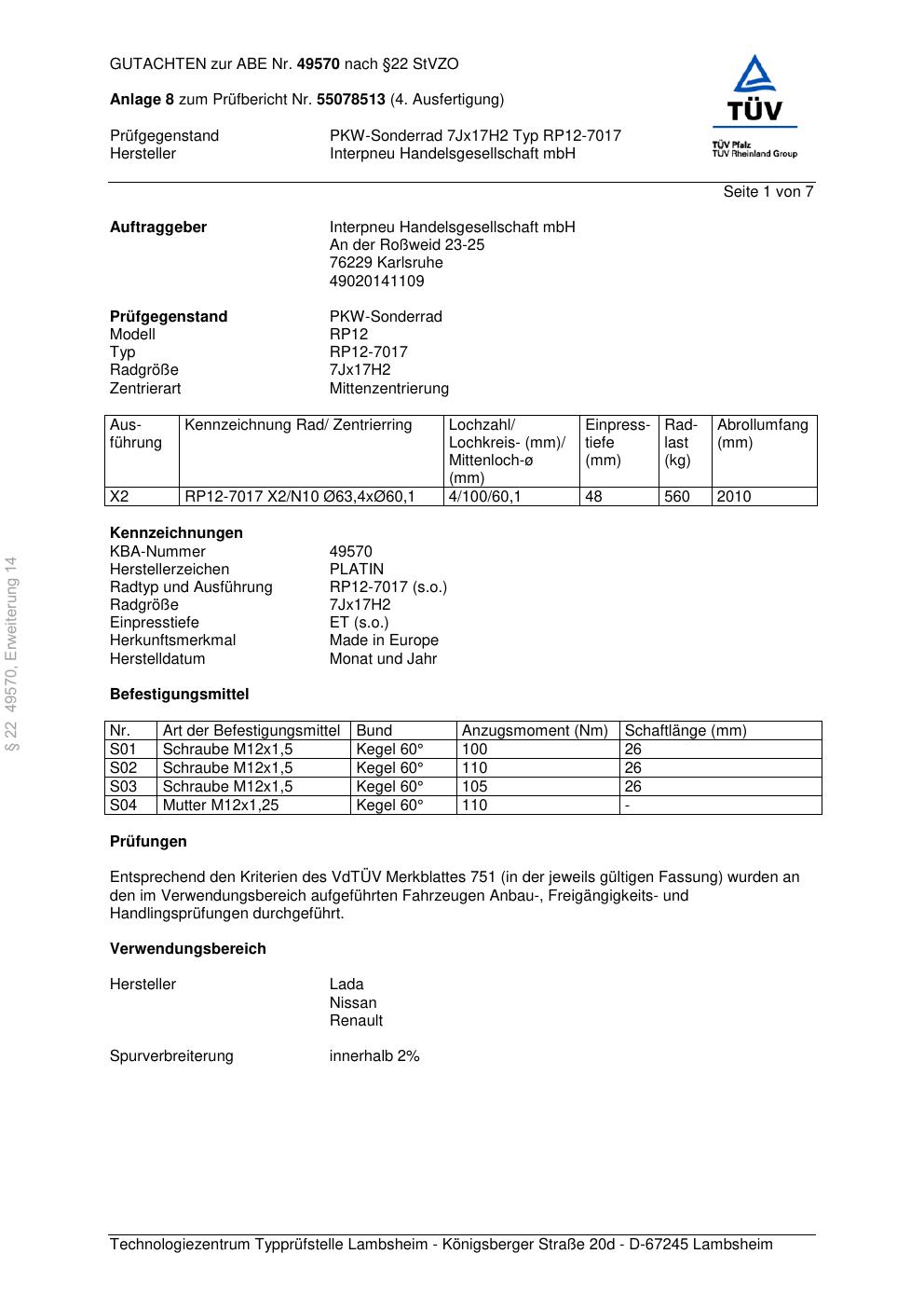 Dieses abe gehört zur Felge Platin RP12-7017 in 7Jx17 ET0 mit KBA 49570. Die Seite ist dafür gedacht, dass du schnell prüfen kannst, ob KBA, Design und Größe zu deiner Felge passen und danach direkt das richtige PDF lädst.