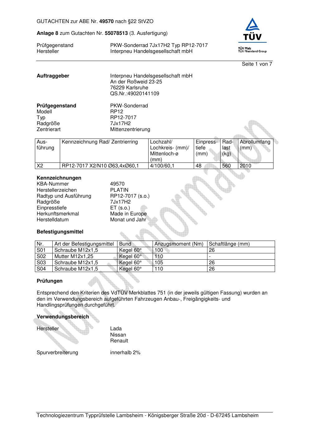 • Stimmt die KBA-Nummer auf der Felge mit diesem Dokument überein?