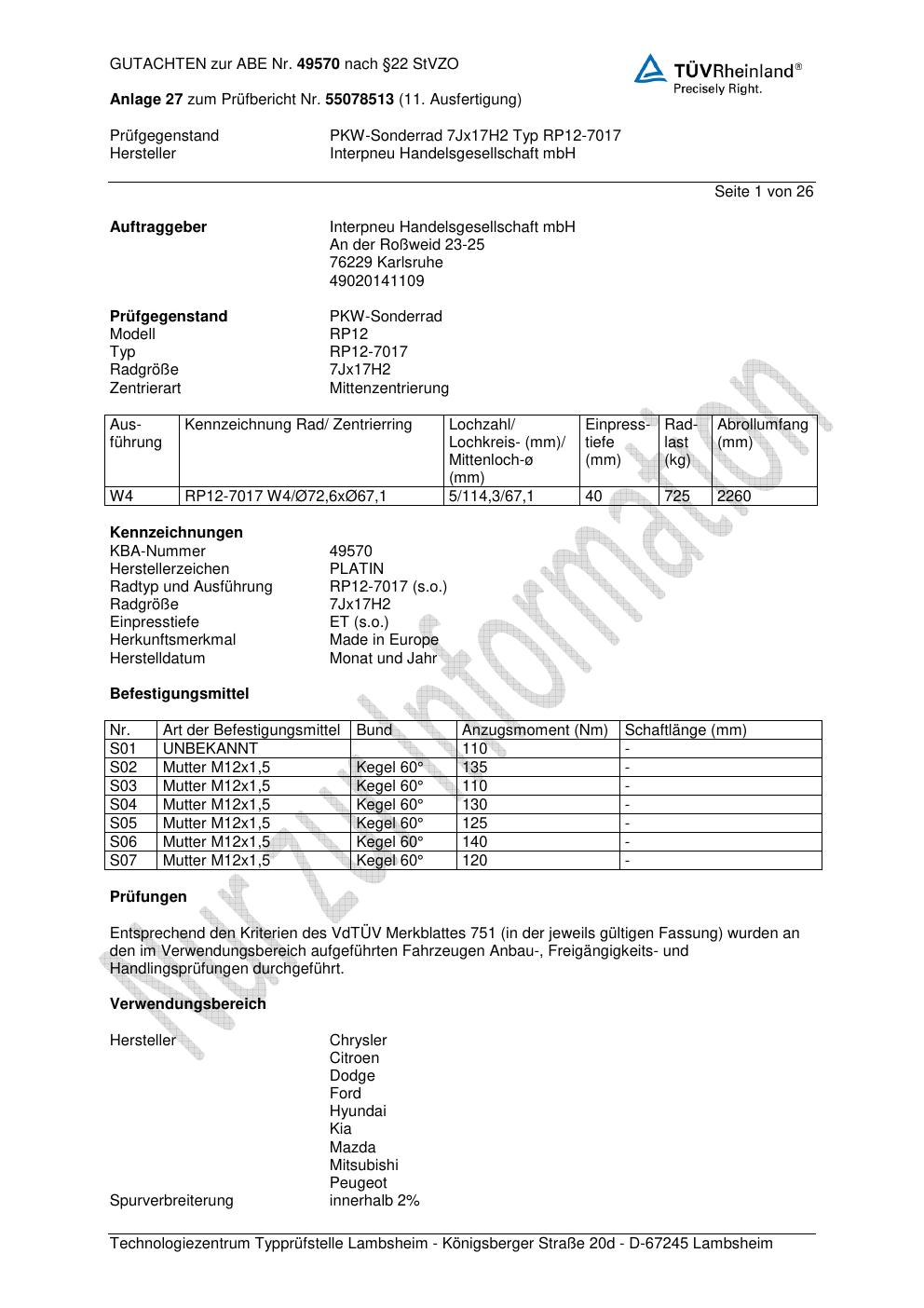 Dieses abe gehört zur Felge Platin RP12-7017 in 7Jx17 ET0 mit KBA 49570. Die Seite ist dafür gedacht, dass du schnell prüfen kannst, ob KBA, Design und Größe zu deiner Felge passen und danach direkt das richtige PDF lädst.