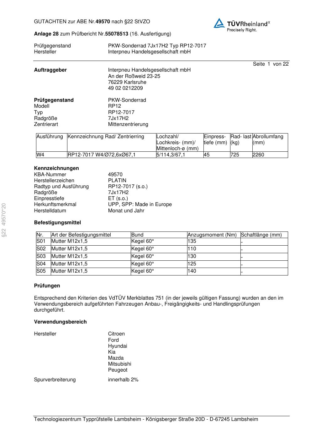 • Stimmt die KBA-Nummer auf der Felge mit diesem Dokument überein?