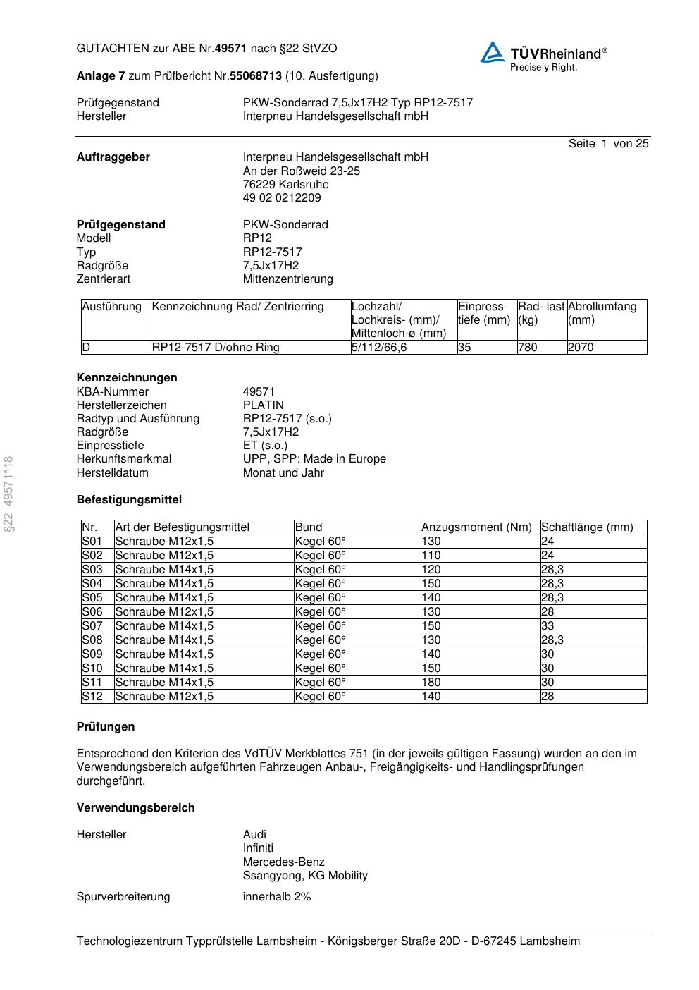 Dieses abe gehört zur Felge Platin RP12-751 7 in 7.5Jx17 ET0 mit KBA 49571. Die Seite ist dafür gedacht, dass du schnell prüfen kannst, ob KBA, Design und Größe zu deiner Felge passen und danach direkt das richtige PDF lädst.