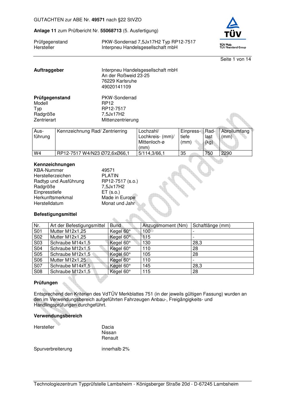 Dieses abe gehört zur Felge Platin RP12-751 7 in 7.5Jx17 ET0 mit KBA 49571. Die Seite ist dafür gedacht, dass du schnell prüfen kannst, ob KBA, Design und Größe zu deiner Felge passen und danach direkt das richtige PDF lädst.
