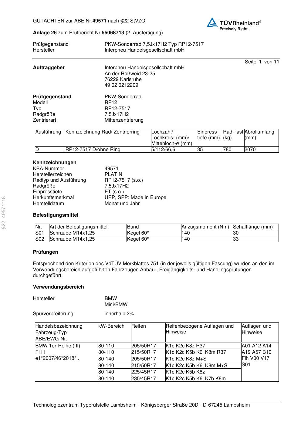 • Stimmt die KBA-Nummer auf der Felge mit diesem Dokument überein?