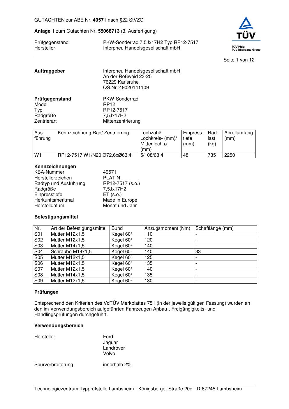 • Stimmt die KBA-Nummer auf der Felge mit diesem Dokument überein?