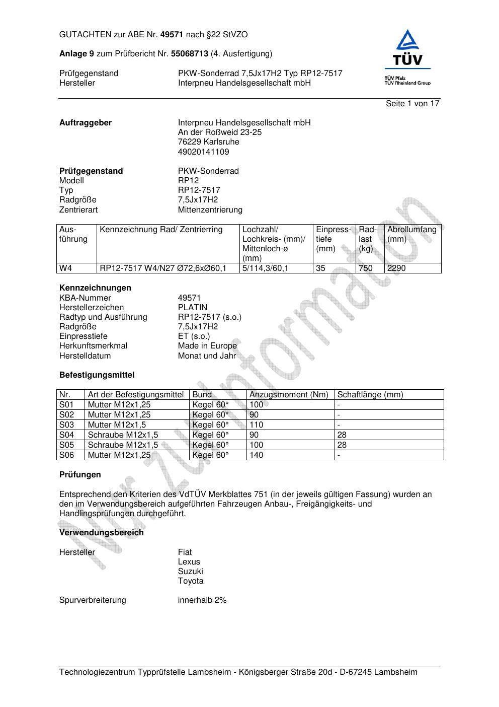 Dieses abe gehört zur Felge Platin RP12-751 7 in 7.5Jx17 ET0 mit KBA 49571. Die Seite ist dafür gedacht, dass du schnell prüfen kannst, ob KBA, Design und Größe zu deiner Felge passen und danach direkt das richtige PDF lädst.