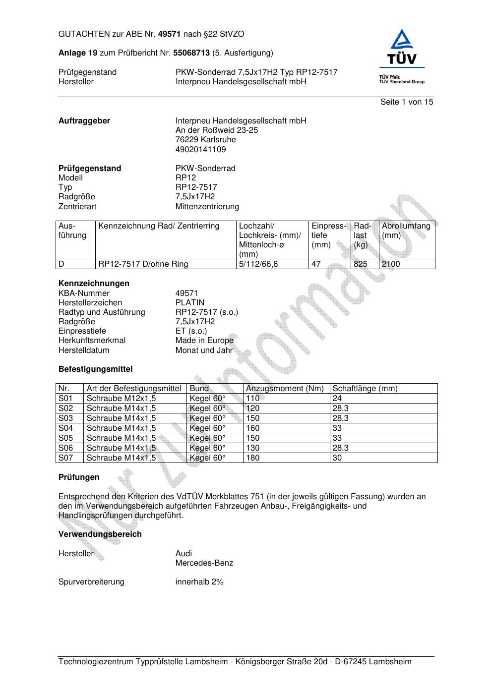 Dieses abe gehört zur Felge Platin RP12-751 7 in 7.5Jx17 ET0 mit KBA 49571. Die Seite ist dafür gedacht, dass du schnell prüfen kannst, ob KBA, Design und Größe zu deiner Felge passen und danach direkt das richtige PDF lädst.