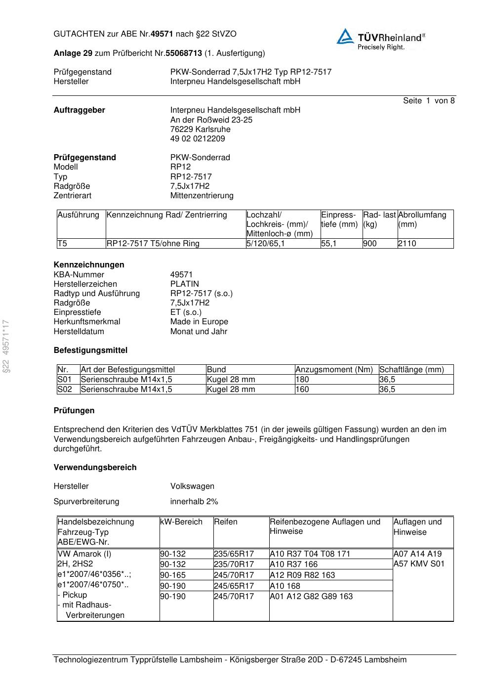 • Stimmt die KBA-Nummer auf der Felge mit diesem Dokument überein?
