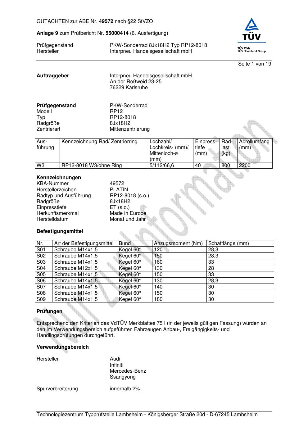 Dieses abe gehört zur Felge Platin RP12-8018 in 8Jx18 ET0 mit KBA 49572. Die Seite ist dafür gedacht, dass du schnell prüfen kannst, ob KBA, Design und Größe zu deiner Felge passen und danach direkt das richtige PDF lädst.