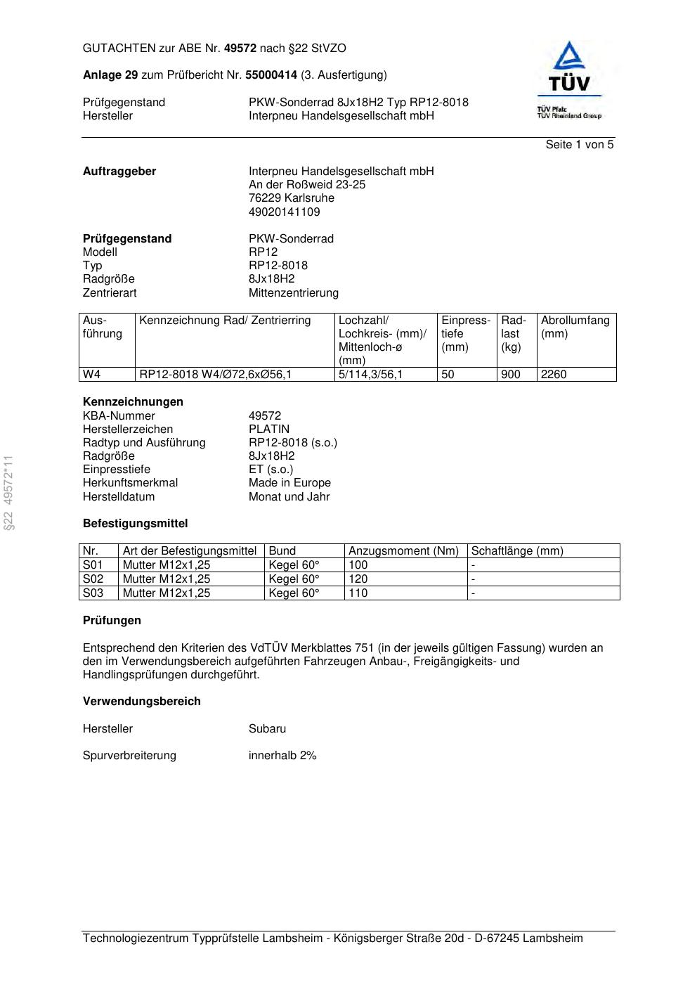 Dieses abe gehört zur Felge Platin RP12-8018 in 8Jx18 ET0 mit KBA 49572. Die Seite ist dafür gedacht, dass du schnell prüfen kannst, ob KBA, Design und Größe zu deiner Felge passen und danach direkt das richtige PDF lädst.