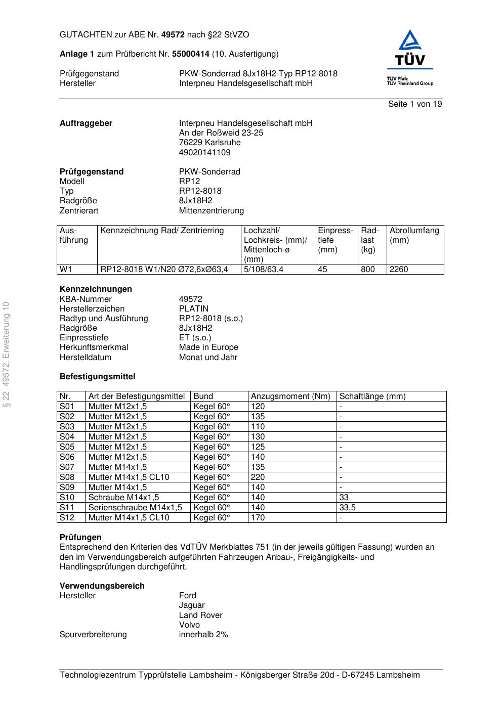 • Stimmt die KBA-Nummer auf der Felge mit diesem Dokument überein?