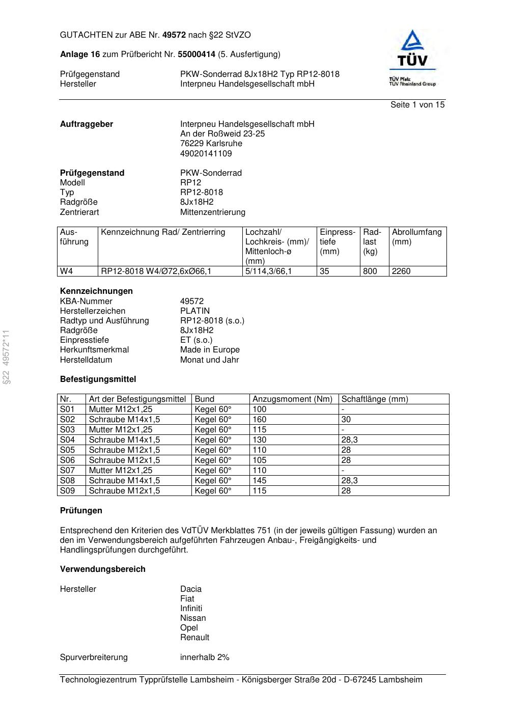• Stimmt die KBA-Nummer auf der Felge mit diesem Dokument überein?