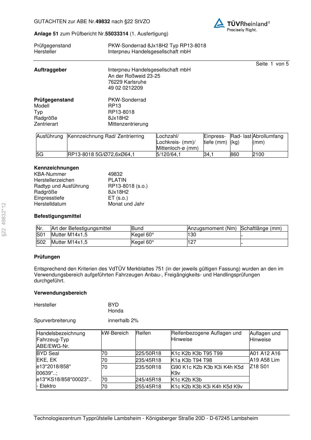 • Stimmt die KBA-Nummer auf der Felge mit diesem Dokument überein?