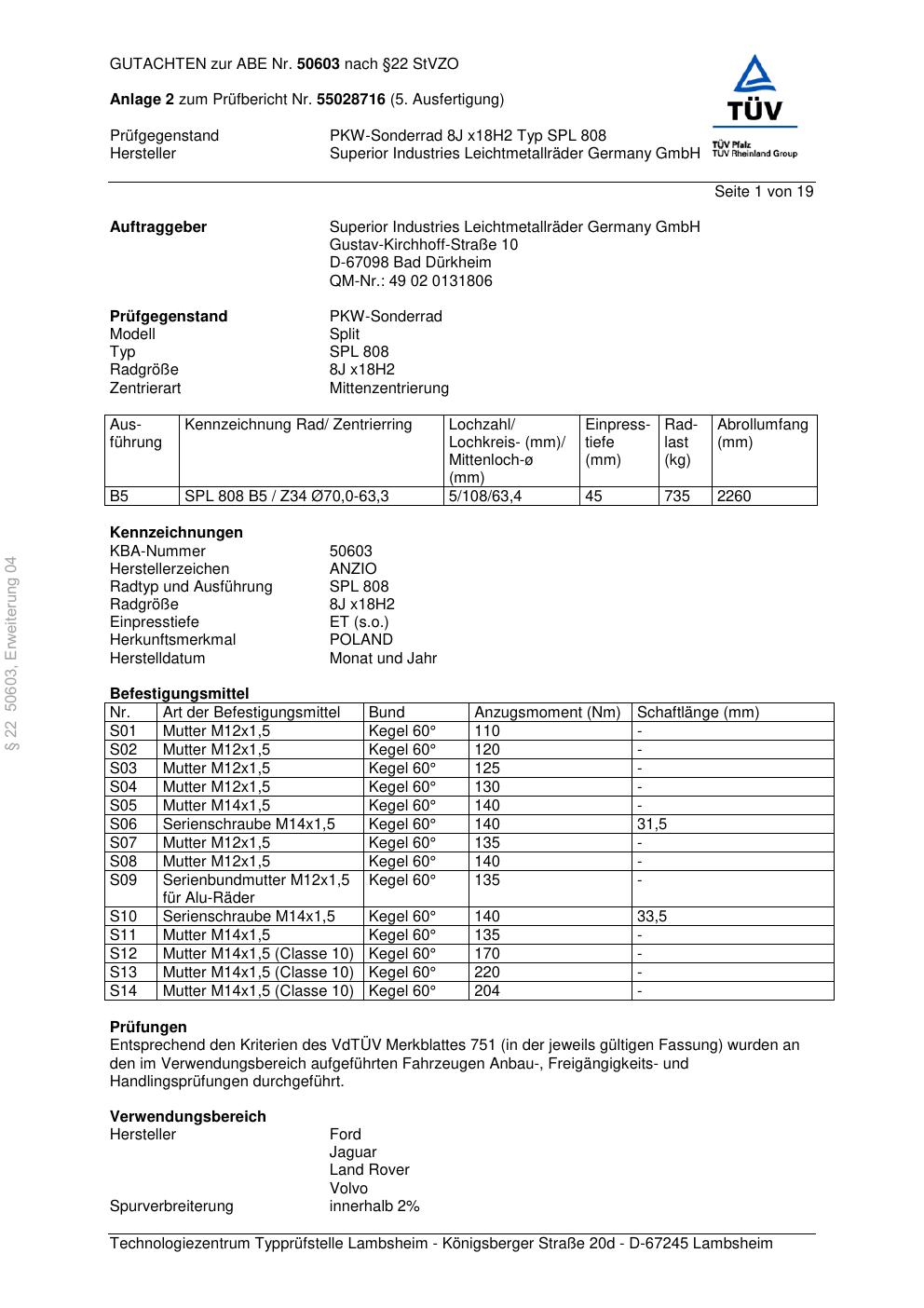 Dieses abe gehört zur Felge Anzio SPL 808 in 8Jx18 ET0 mit KBA 50603. Die Seite ist dafür gedacht, dass du schnell prüfen kannst, ob KBA, Design und Größe zu deiner Felge passen und danach direkt das richtige PDF lädst.