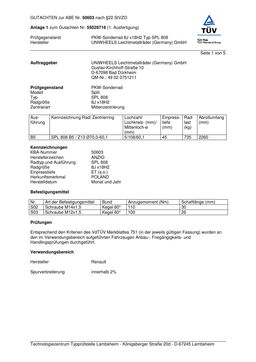 Dieses abe gehört zur Felge Anzio SPL 808 in 8Jx18 ET0 mit KBA 50603. Die Seite ist dafür gedacht, dass du schnell prüfen kannst, ob KBA, Design und Größe zu deiner Felge passen und danach direkt das richtige PDF lädst.
