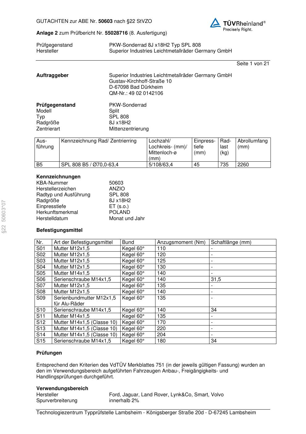 Dieses abe gehört zur Felge Anzio SPL 808 in 8Jx18 ET0 mit KBA 50603. Die Seite ist dafür gedacht, dass du schnell prüfen kannst, ob KBA, Design und Größe zu deiner Felge passen und danach direkt das richtige PDF lädst.