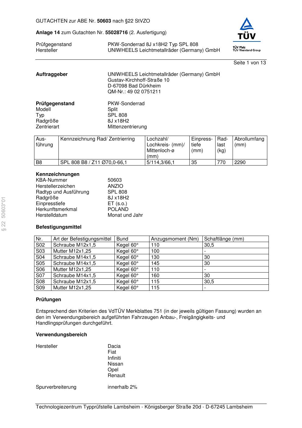 Dieses abe gehört zur Felge Anzio SPL 808 in 8Jx18 ET0 mit KBA 50603. Die Seite ist dafür gedacht, dass du schnell prüfen kannst, ob KBA, Design und Größe zu deiner Felge passen und danach direkt das richtige PDF lädst.
