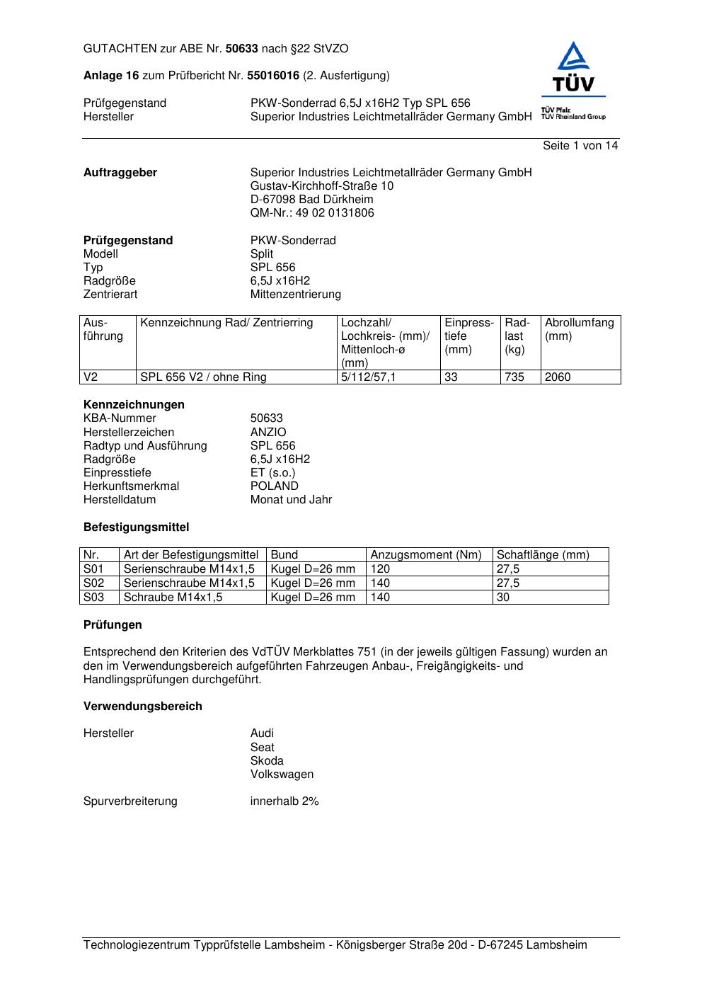Dieses abe gehört zur Felge Anzio SPL 656 in 6.5Jx16 ET0 mit KBA 50633. Die Seite ist dafür gedacht, dass du schnell prüfen kannst, ob KBA, Design und Größe zu deiner Felge passen und danach direkt das richtige PDF lädst.