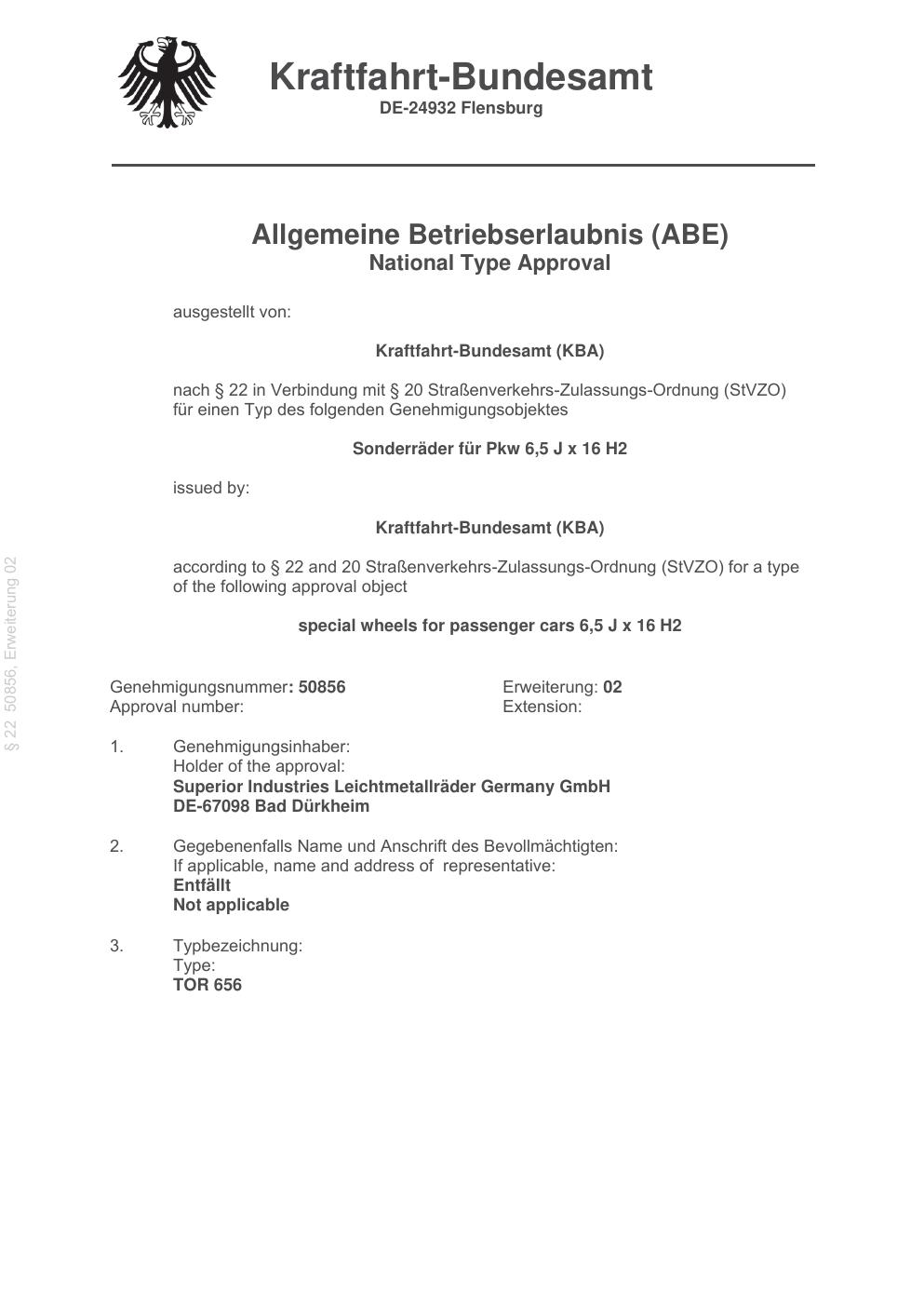 Felgengutachten / abe für Alufelgen Rial TP2 (6.5Jx16 ET 0, Mittenloch 0 mm) mit KBA 50856 (Zertifikatsnummer 50856). Hier kostenlos als PDF herunterladen. Der Download-Link ist 24 Stunden gültig und kann bis zu zwei Mal verwendet werden.