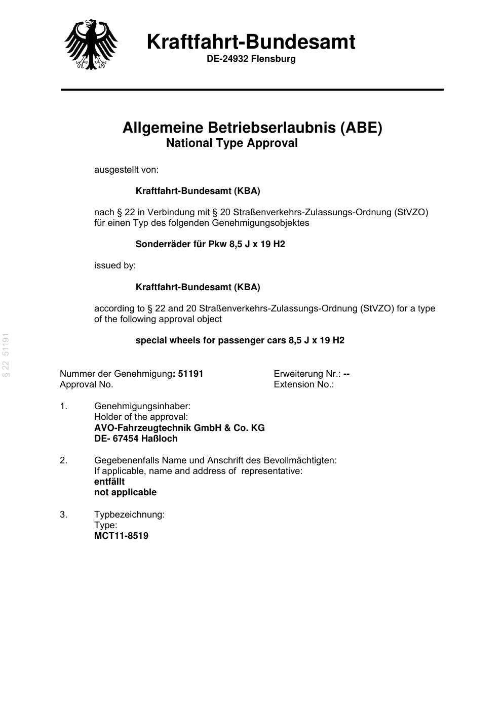 Felgengutachten / abe für Alufelgen ATS UN8080 (8.5Jx19 ET 0, Mittenloch 0 mm) mit KBA 51191 (Zertifikatsnummer 51191). Hier kostenlos als PDF herunterladen. Der Download-Link ist 24 Stunden gültig und kann bis zu zwei Mal verwendet werden.
