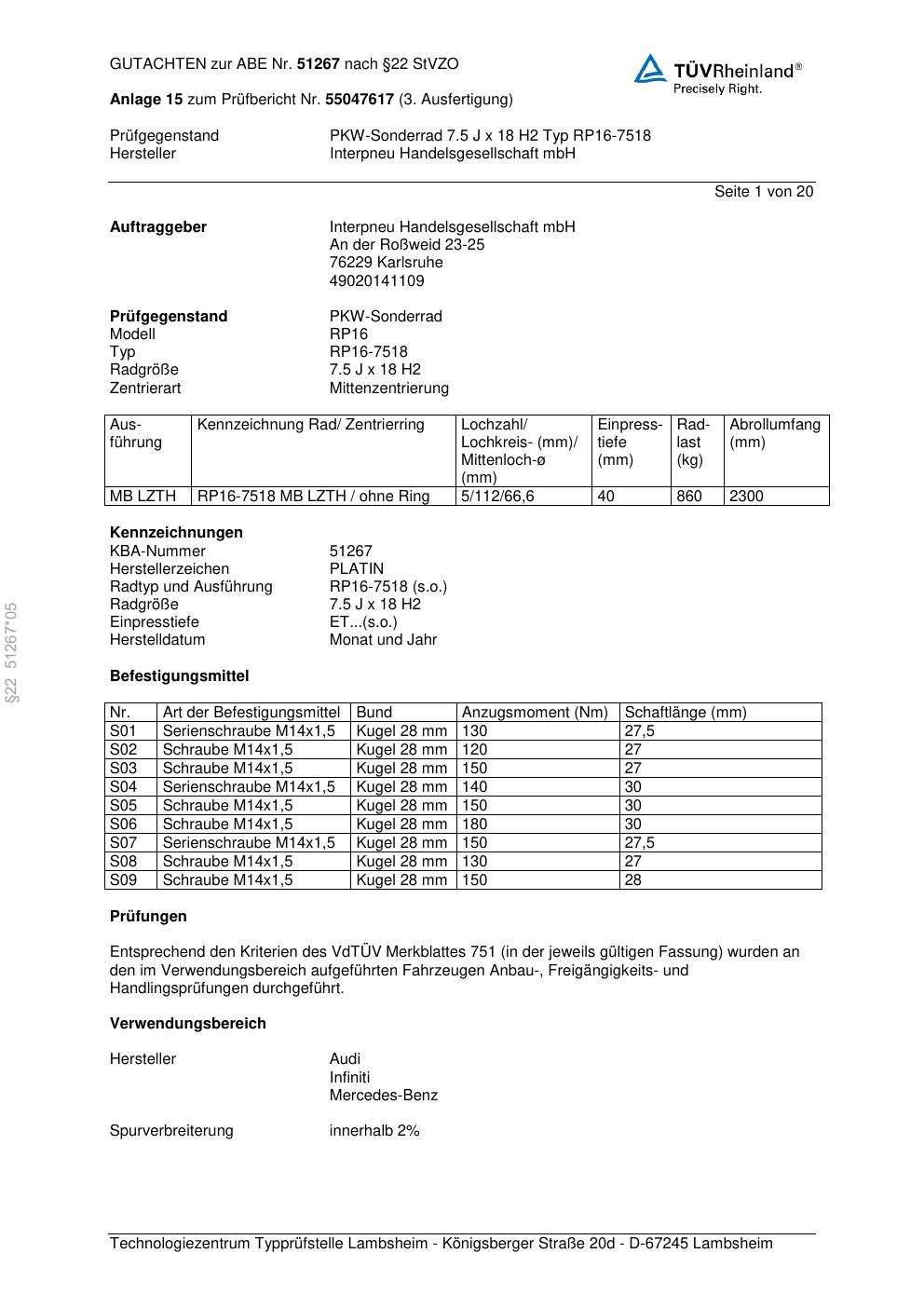 • Stimmt die KBA-Nummer auf der Felge mit diesem Dokument überein?