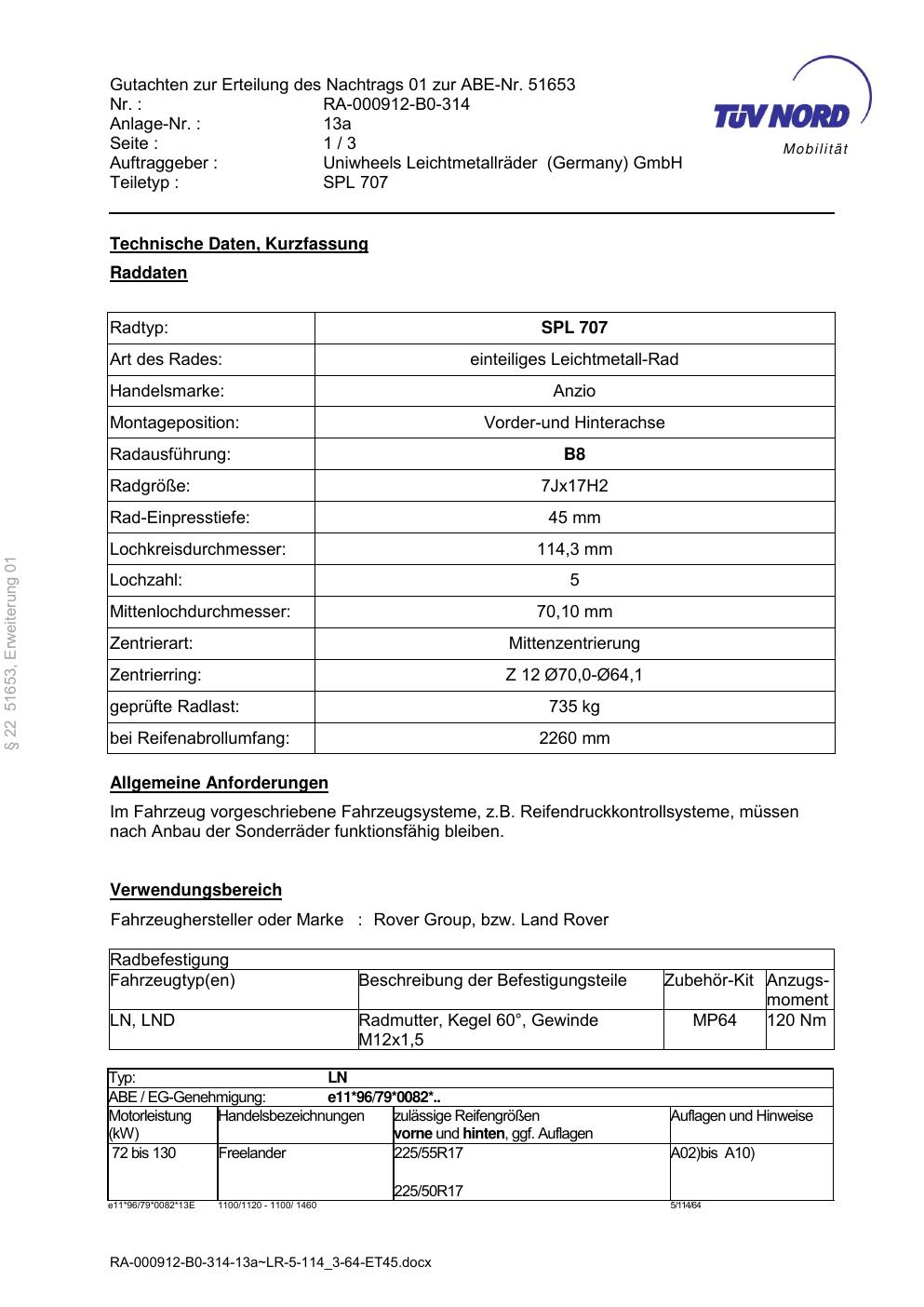 Fahrzeugfreigaben: LAND ROVER, ROVER