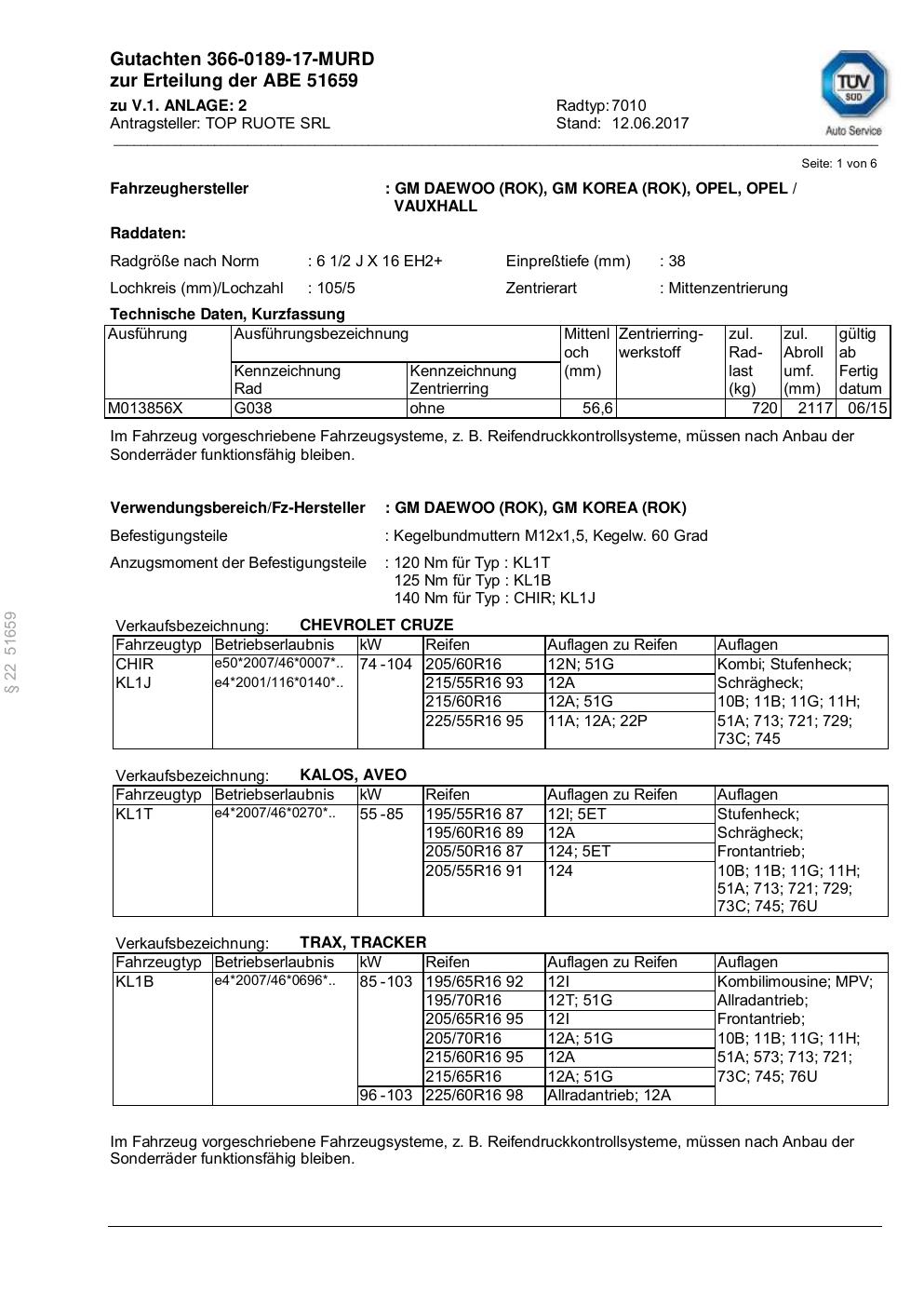 Felgengutachten / abe für Alufelgen ATS 7010 (2Jx16 ET 0, Mittenloch 0 mm) mit KBA 51659 (Zertifikatsnummer 51659). Hier kostenlos als PDF herunterladen. Der Download-Link ist 24 Stunden gültig und kann bis zu zwei Mal verwendet werden.