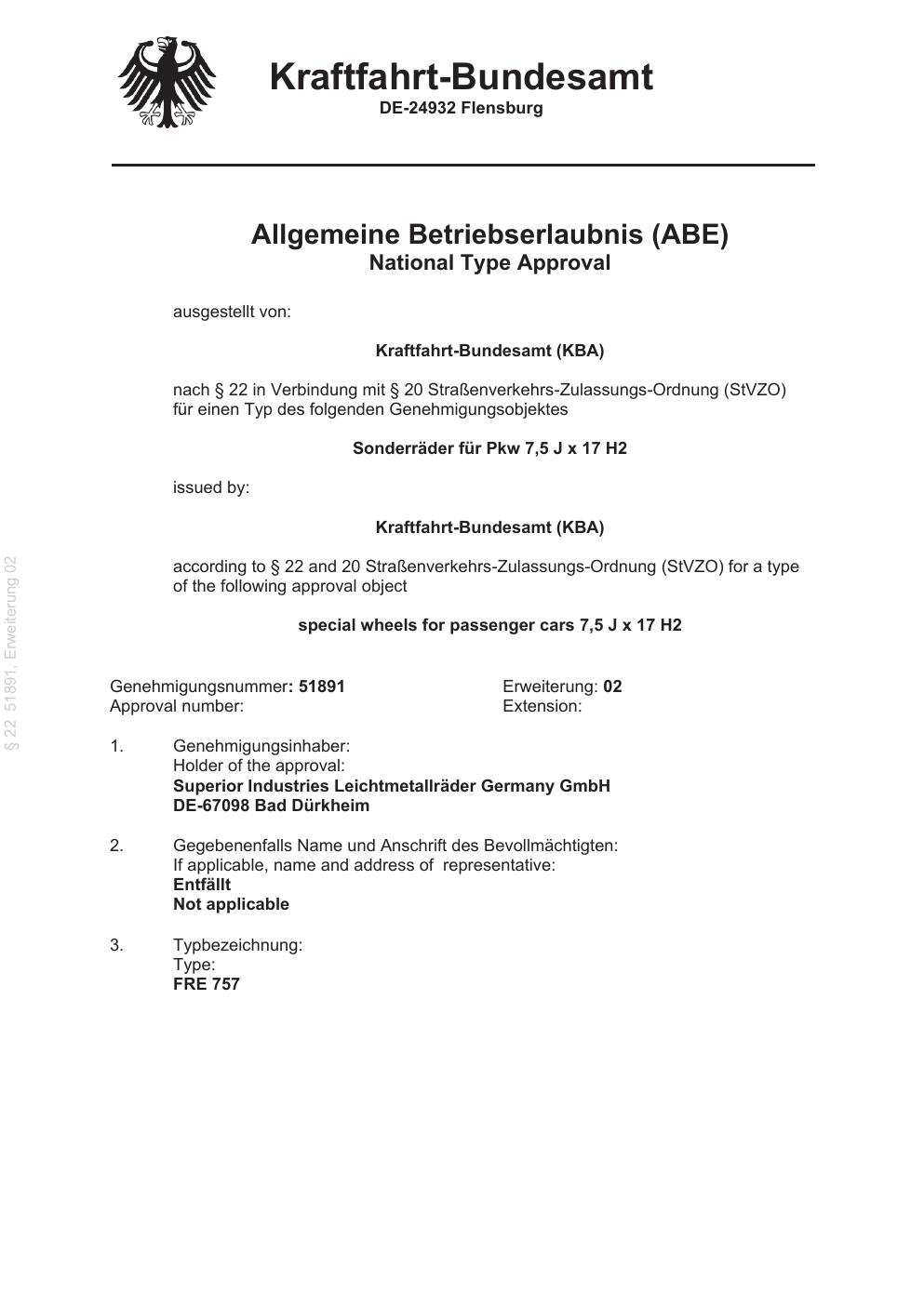 Felgengutachten / abe für Alufelgen ALUTEC ADX (7.5Jx17 ET 0, Mittenloch 0 mm) mit KBA 51891 (Zertifikatsnummer 51891). Hier kostenlos als PDF herunterladen. Der Download-Link ist 24 Stunden gültig und kann bis zu zwei Mal verwendet werden.