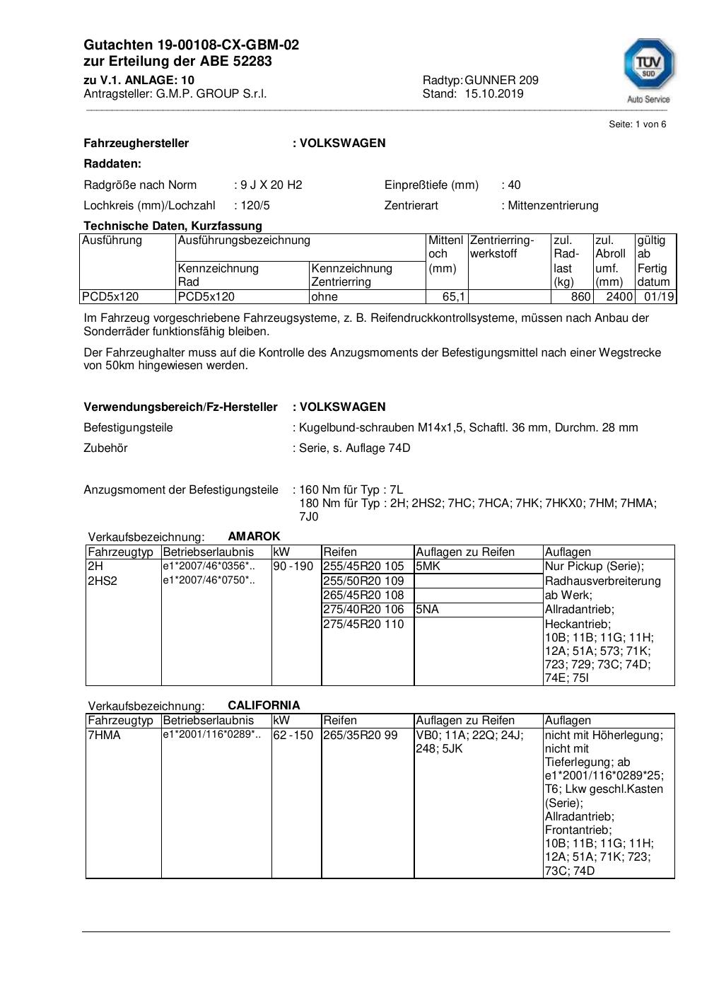 Dieses Gutachten (abe) bezieht sich auf die Alufelge ATS GUNNER 209 in der Ausführung 9Jx2 ET 0, Mittenloch 0 mm (KBA 52283). Im PDF findest du typischerweise zulässige Reifengrößen, Auflagen/Anbauhinweise und – je nach Dokument – Hinweise zur Eintragung.