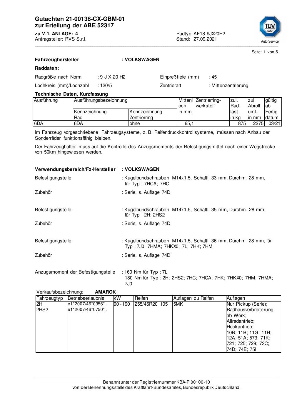 Felgengutachten / abe für Alufelgen ATS AF18 (9Jx2 ET 0, Mittenloch 0 mm) mit KBA 52317 (Zertifikatsnummer 52317). Hier kostenlos als PDF herunterladen. Der Download-Link ist 24 Stunden gültig und kann bis zu zwei Mal verwendet werden.
