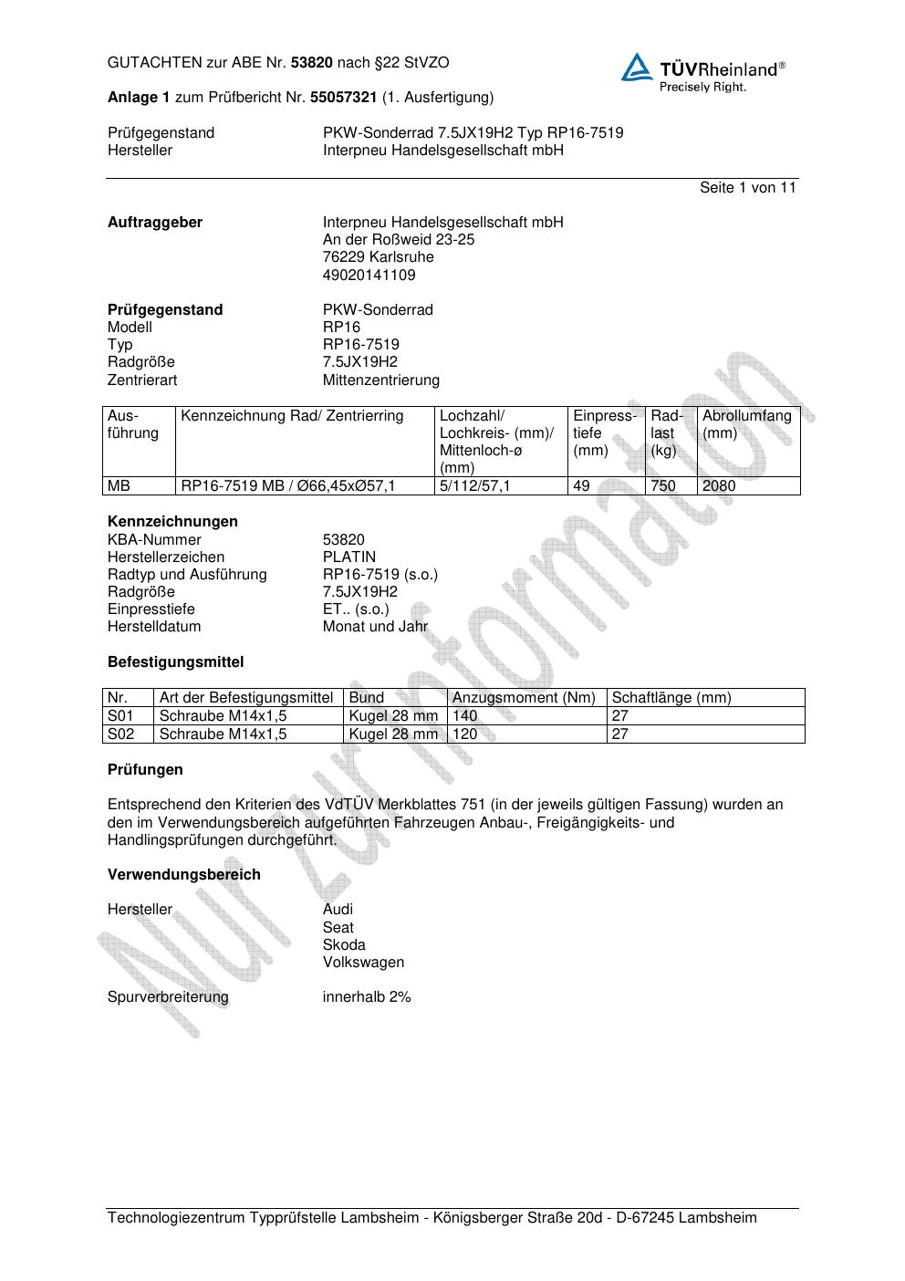 • Stimmt die KBA-Nummer auf der Felge mit diesem Dokument überein?