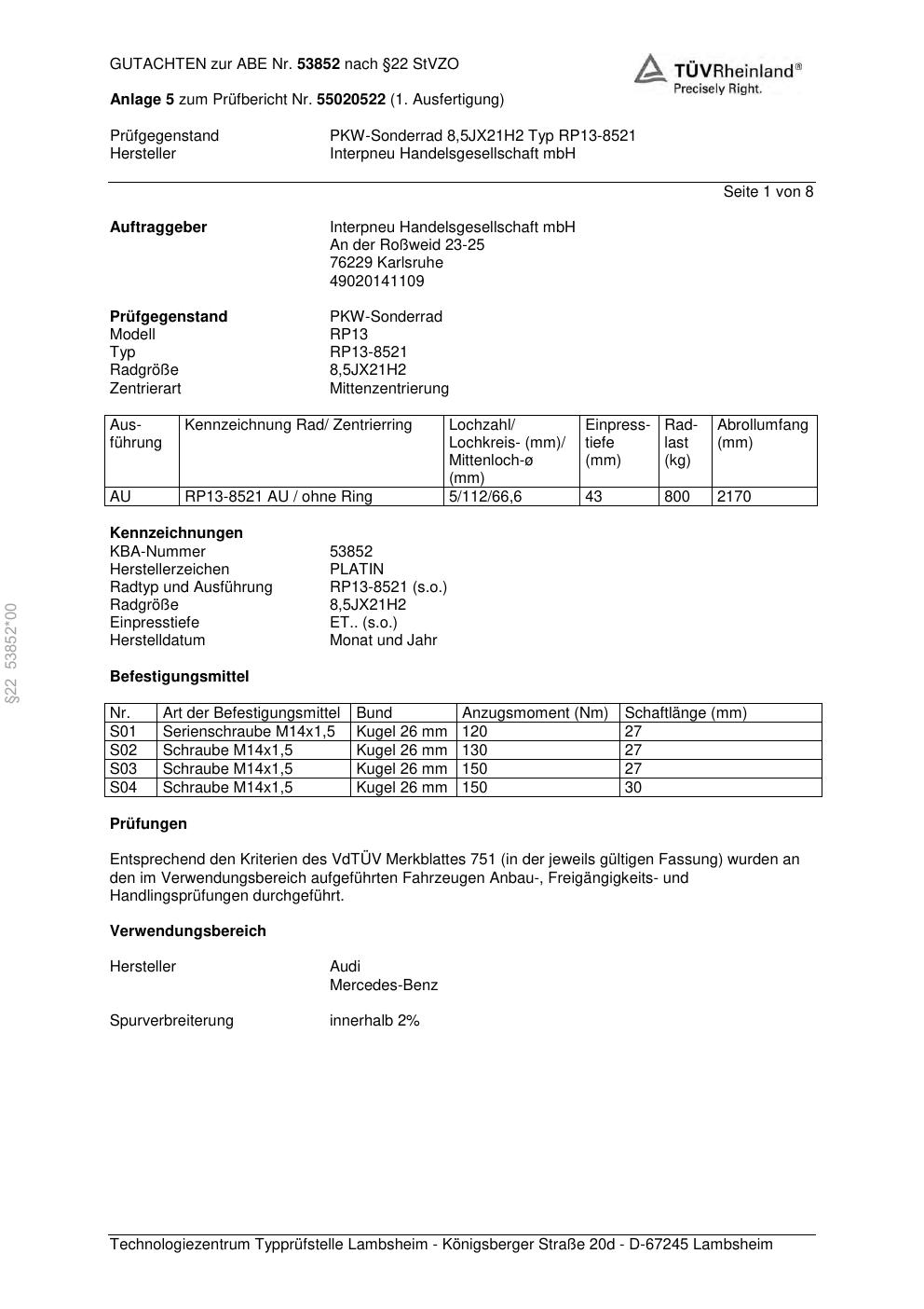- Stimmt die KBA-Nummer auf der Felge mit diesem Dokument überein?