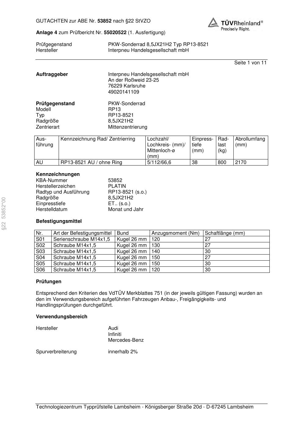 - Stimmt die KBA-Nummer auf der Felge mit diesem Dokument überein?
