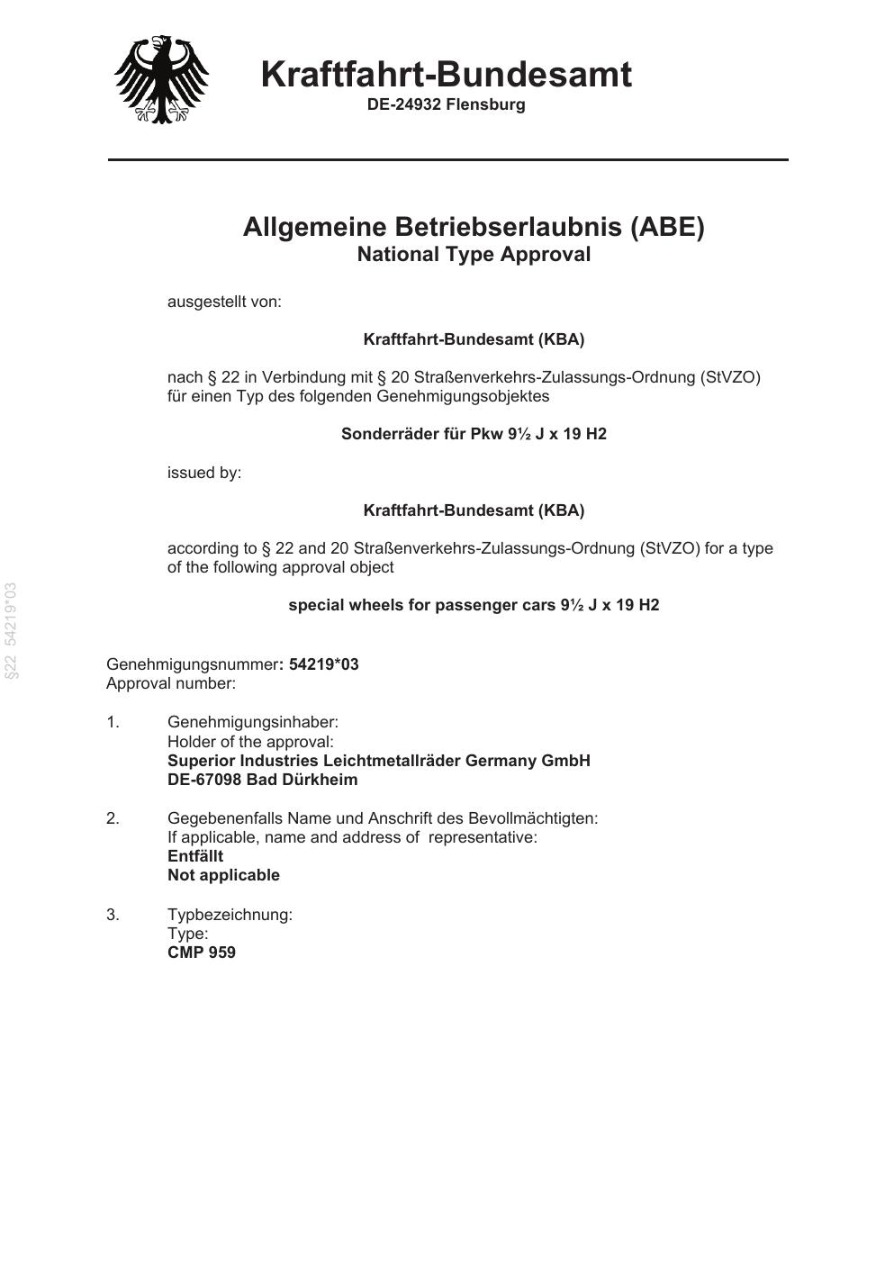 Felgengutachten / abe für Alufelgen ATS PSN 9521 (9.5Jx19 ET 0, Mittenloch 0 mm) mit KBA 54219 (Zertifikatsnummer 54219). Hier kostenlos als PDF herunterladen. Der Download-Link ist 24 Stunden gültig und kann bis zu zwei Mal verwendet werden.