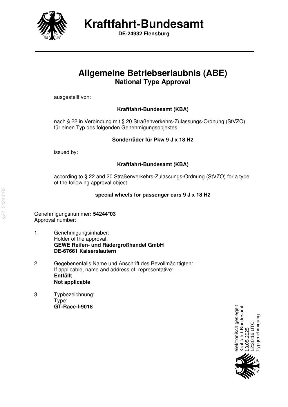 Dieses Gutachten (abe) bezieht sich auf die Alufelge ATS UN8080 in der Ausführung 9Jx18 ET 0, Mittenloch 0 mm (KBA 54244). Im PDF findest du typischerweise zulässige Reifengrößen, Auflagen/Anbauhinweise und – je nach Dokument – Hinweise zur Eintragung.
