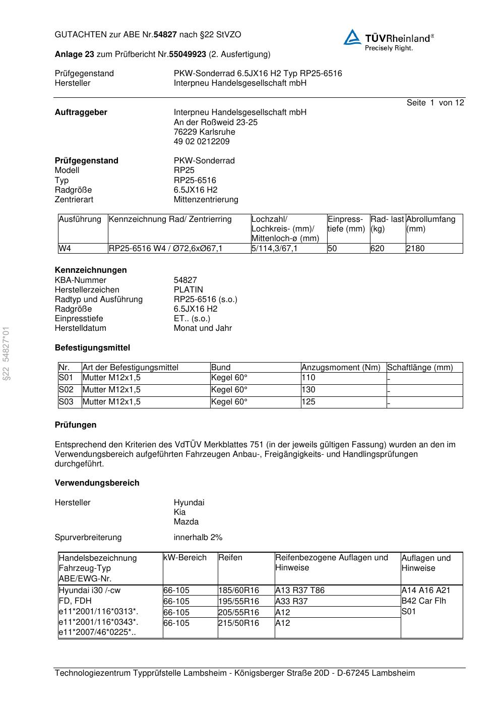 • Stimmt die KBA-Nummer auf der Felge mit diesem Dokument überein?