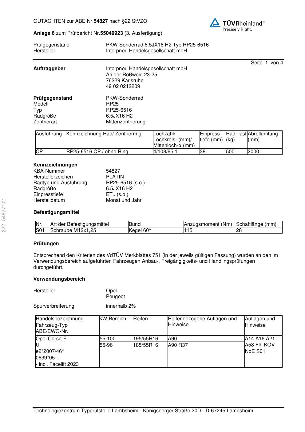 - Stimmt die KBA-Nummer auf der Felge mit diesem Dokument überein?