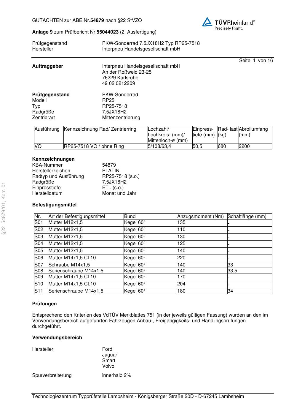 • Stimmt die KBA-Nummer auf der Felge mit diesem Dokument überein?