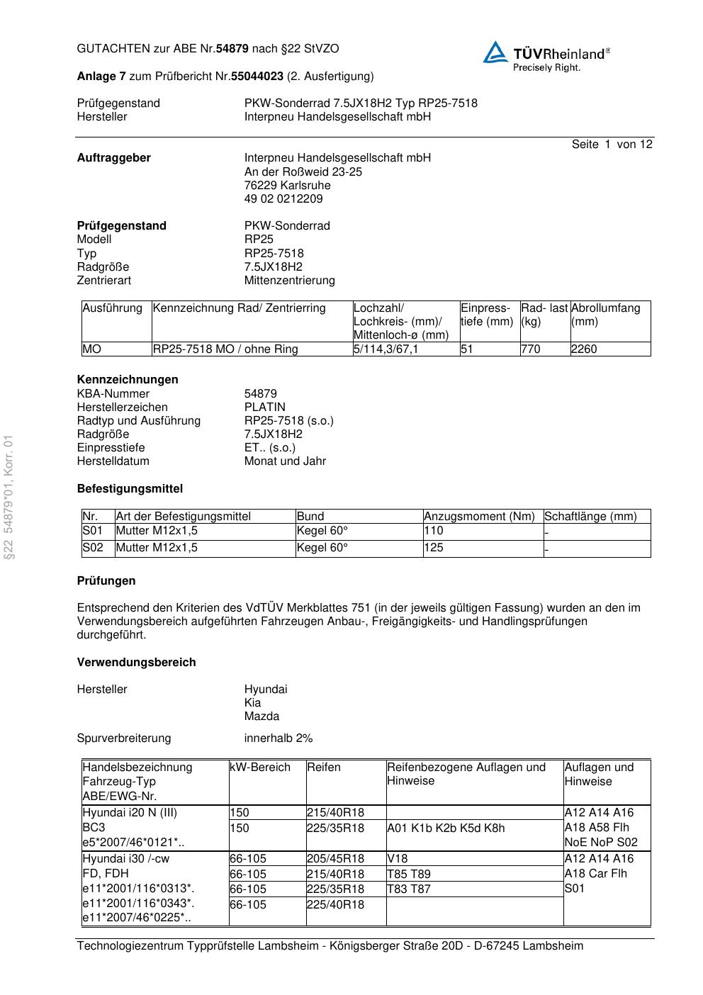 • Stimmt die KBA-Nummer auf der Felge mit diesem Dokument überein?