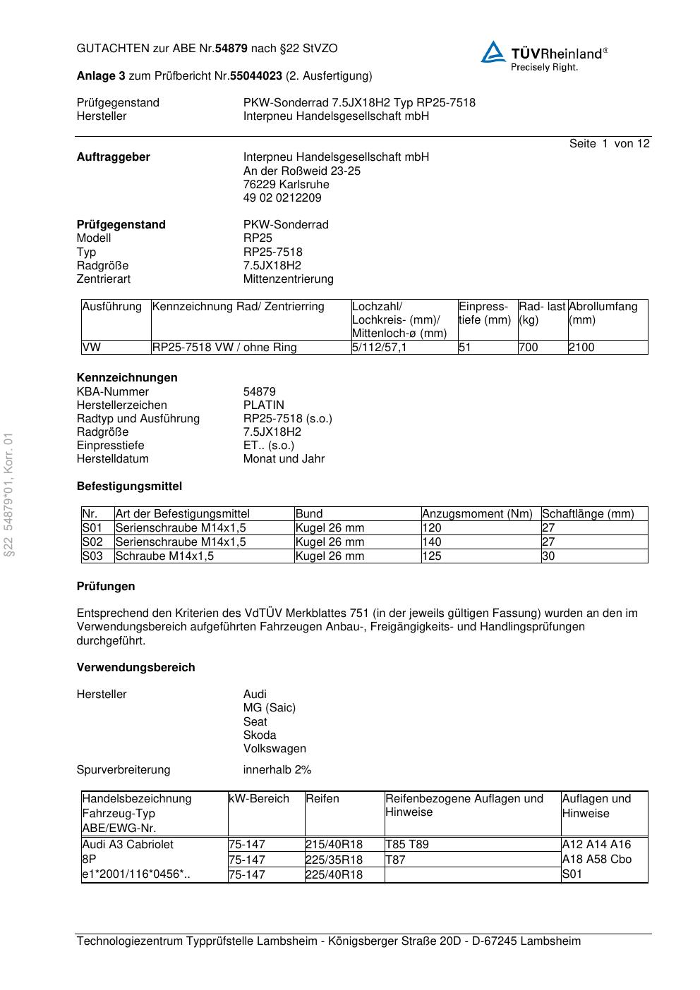 Dieses abe gehört zur Felge Platin RP25-751 8 in 7.5Jx18 ET0 mit KBA 54879. Die Seite ist dafür gedacht, dass du schnell prüfen kannst, ob KBA, Design und Größe zu deiner Felge passen und danach direkt das richtige PDF lädst.